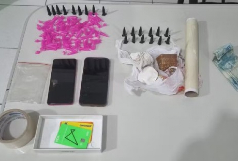 No bairro Eldorado, a polícia encontrou um outro suspeito, que fugiu ao perceber as viaturas. O homem de 18 anos e outro, de 21 anos, foram abordados na casa, onde mais porções de drogas foram apreendidas. A dupla, que estava com celulares e R$ 300, confirmou o envolvimento com o tráfico de drogas.