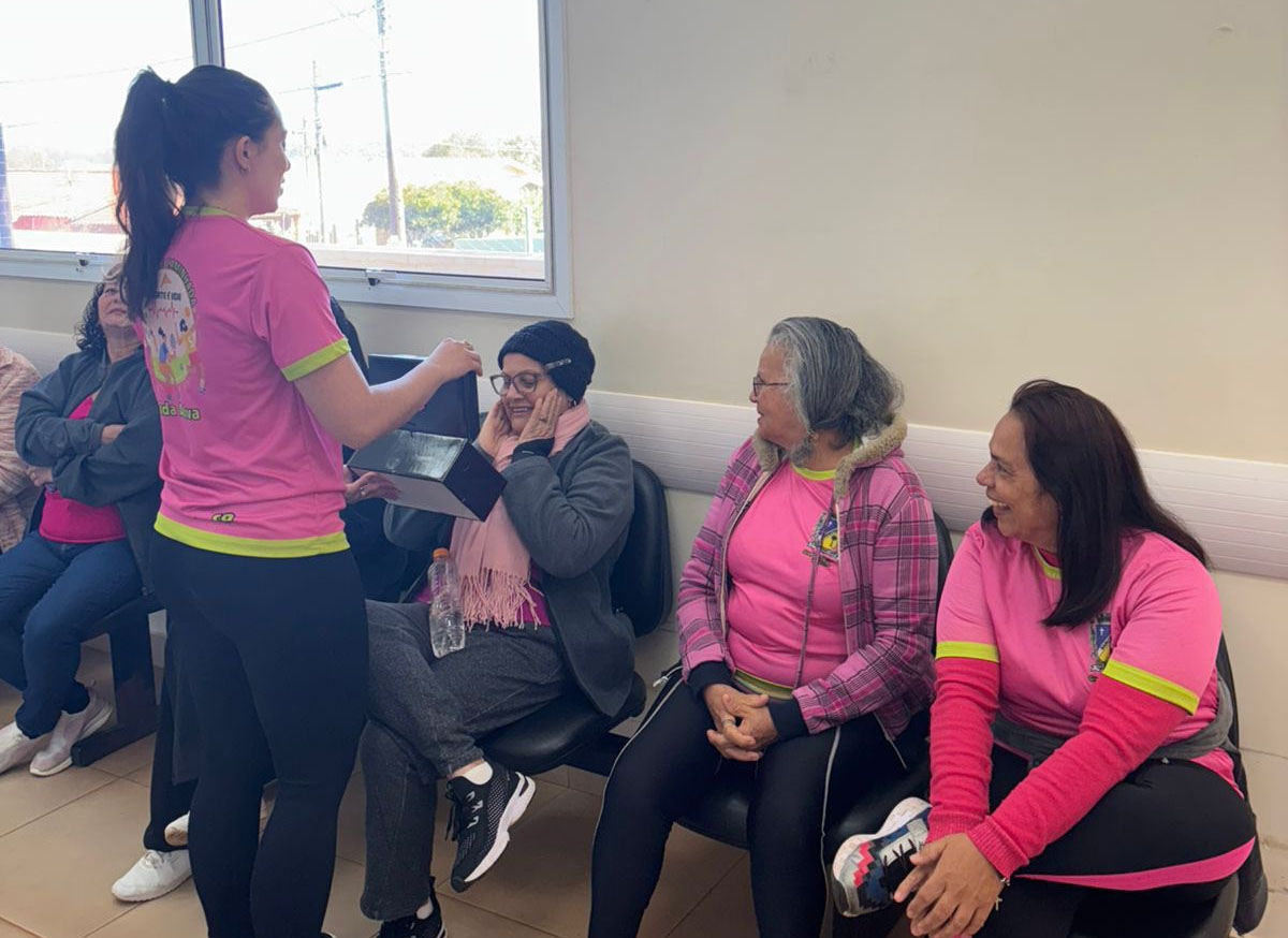 A programação teve início com uma palestra da fisioterapeuta Isabela, que falou sobre o tema Outubro Rosa e destacou os benefícios do exercício físico na prevenção do câncer. Em seguida, a psicóloga Lisiane abordou a saúde mental feminina, reforçando a importância do planejamento, do autocuidado e da realização periódica de exames de rotina.