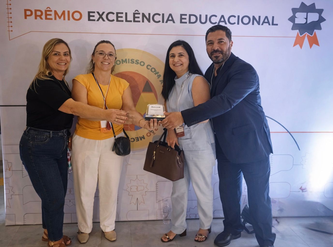 Representando o município na cerimônia de entrega do prêmio, estiveram a coordenadora da educação, Keli, as professoras Mariela e Vanessa, além do vice-prefeito Gango, que esteve presente representando o prefeito João, que por motivos de saúde não pôde participar.