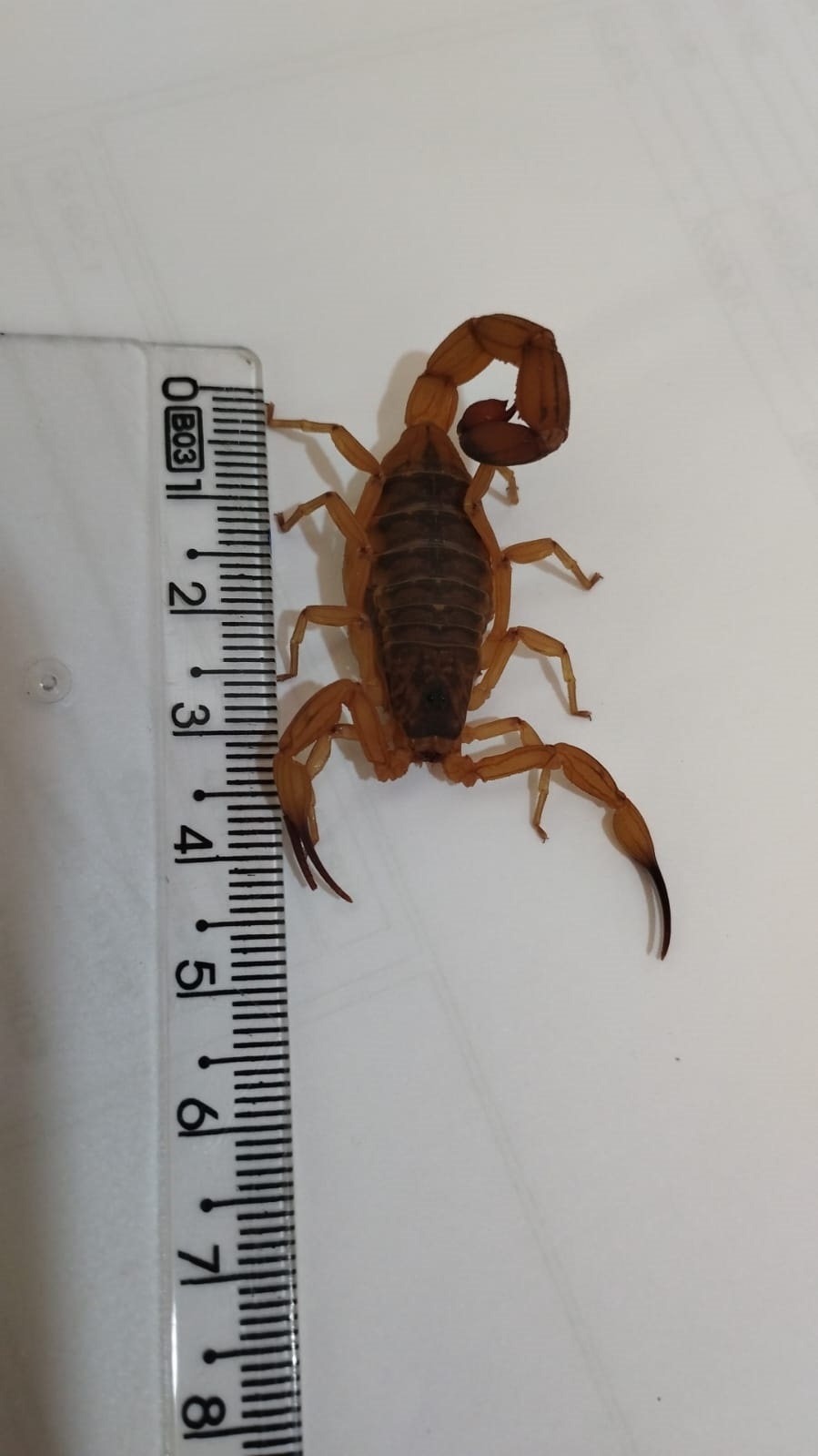 A Coordenadoria de Saúde de Fartura informa que foi encontrado no município, recentemente, um Tityus serrulatus, conhecido popularmente como escorpião-amarelo. Trata-se da principal espécie que causa acidentes graves, com registro de óbitos, principalmente em crianças.
