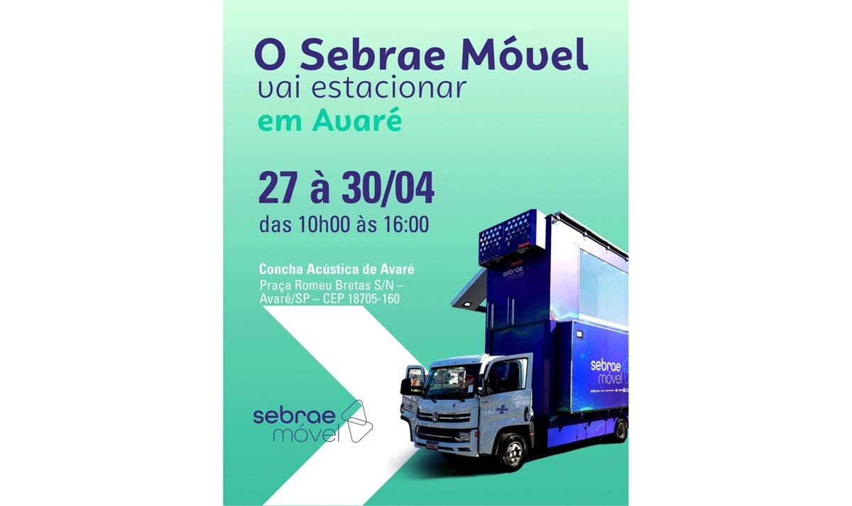 Atenção população, a Estância Turística de Avaré recebe, entre os dias 27 e 30 de abril, o Sebrae Móvel - Serviço Brasileiro de Apoio às Micro e Pequenas Empresas -, uma iniciativa que leva atendimento especializado diretamente à população. A ação é realizada por meio de parceria entre a Prefeitura de Avaré, pela Secretaria de Indústria e Comércio, Associação Comercial, Industrial e Agropecuária de Avaré (ACIA) e Sebrae local, com foco no fortalecimento do empreendedorismo local.