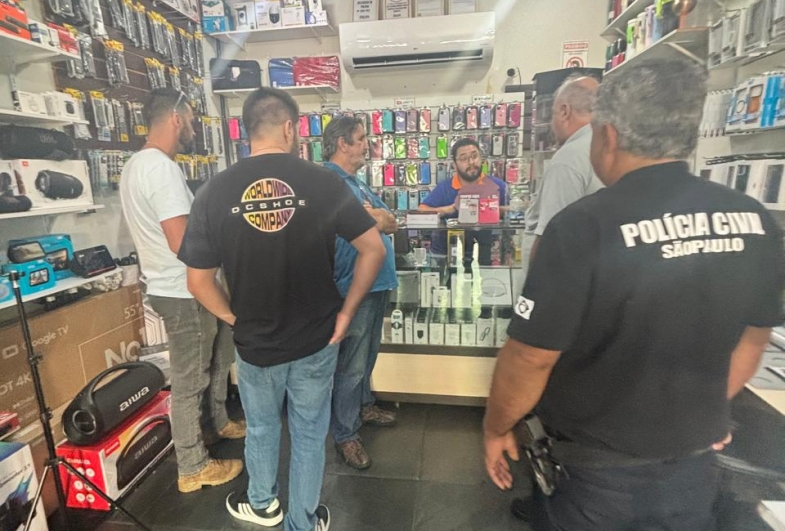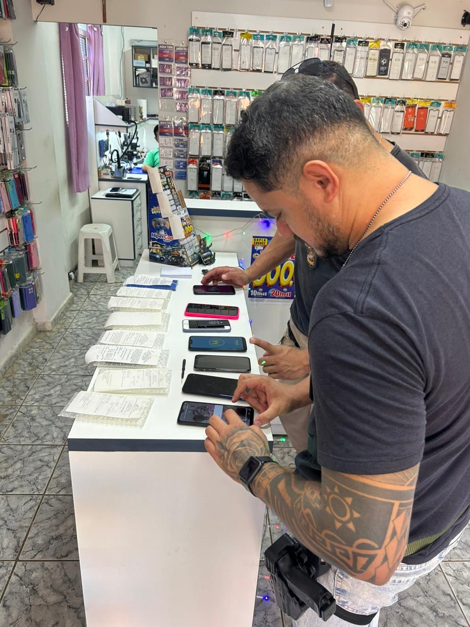 Durante a ação, os policiais civis realizaram vistorias minuciosas nos pontos previamente mapeados, examinando a procedência de aparelhos, carcaças e componentes eletrônicos. Em Paranapanema, a equipe da Delegacia esteve em uma loja local, onde foram analisados 40 aparelhos celulares, todos regularizados.