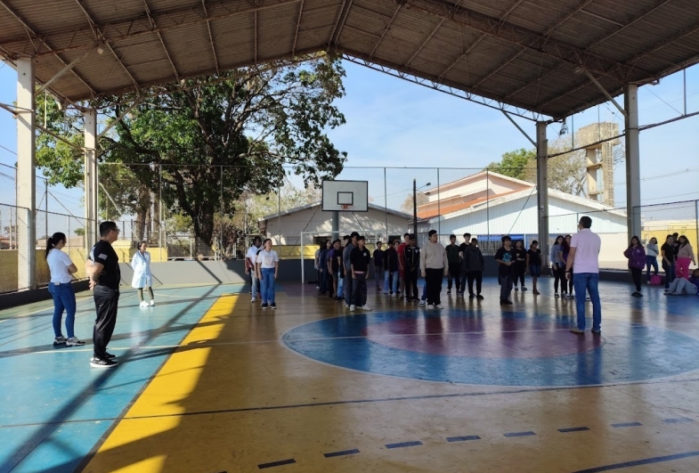 A programação foi finalizada com palestras do fisioterapeuta Marcelo, que abordou temas como saúde postural, ergonomia e prevenção de lesões. Também destinadas às turmas do 8º e 9º anos, as atividades aconteceram em dois horários diferentes e contaram com uma dinâmica realizada na quadra da escola, com duração aproximada de 30 a 40 minutos.