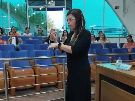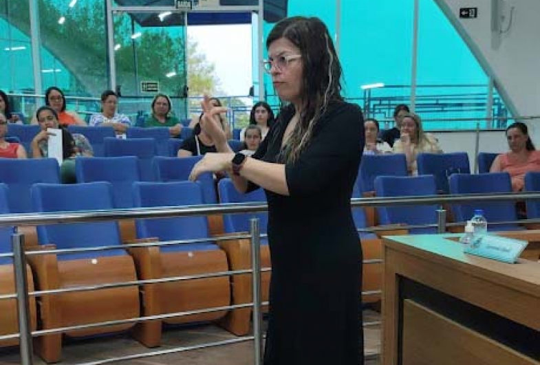 Promovido pelo CPAEE (Centro Pedagógico e Administrativo da Educação Especial de Avaré), o encontro reuniu educadores, estudantes e membros da comunidade surda na Câmara Municipal. A atividade contou com a participação da professora Carolina Macedo, especialista em Educação Especial, e do professor Renan Camargo, mestre e especialista em Libras (professor da ETEC de Itapeva), que compartilharam experiências e reflexões sobre os desafios e avanços na educação inclusiva.
