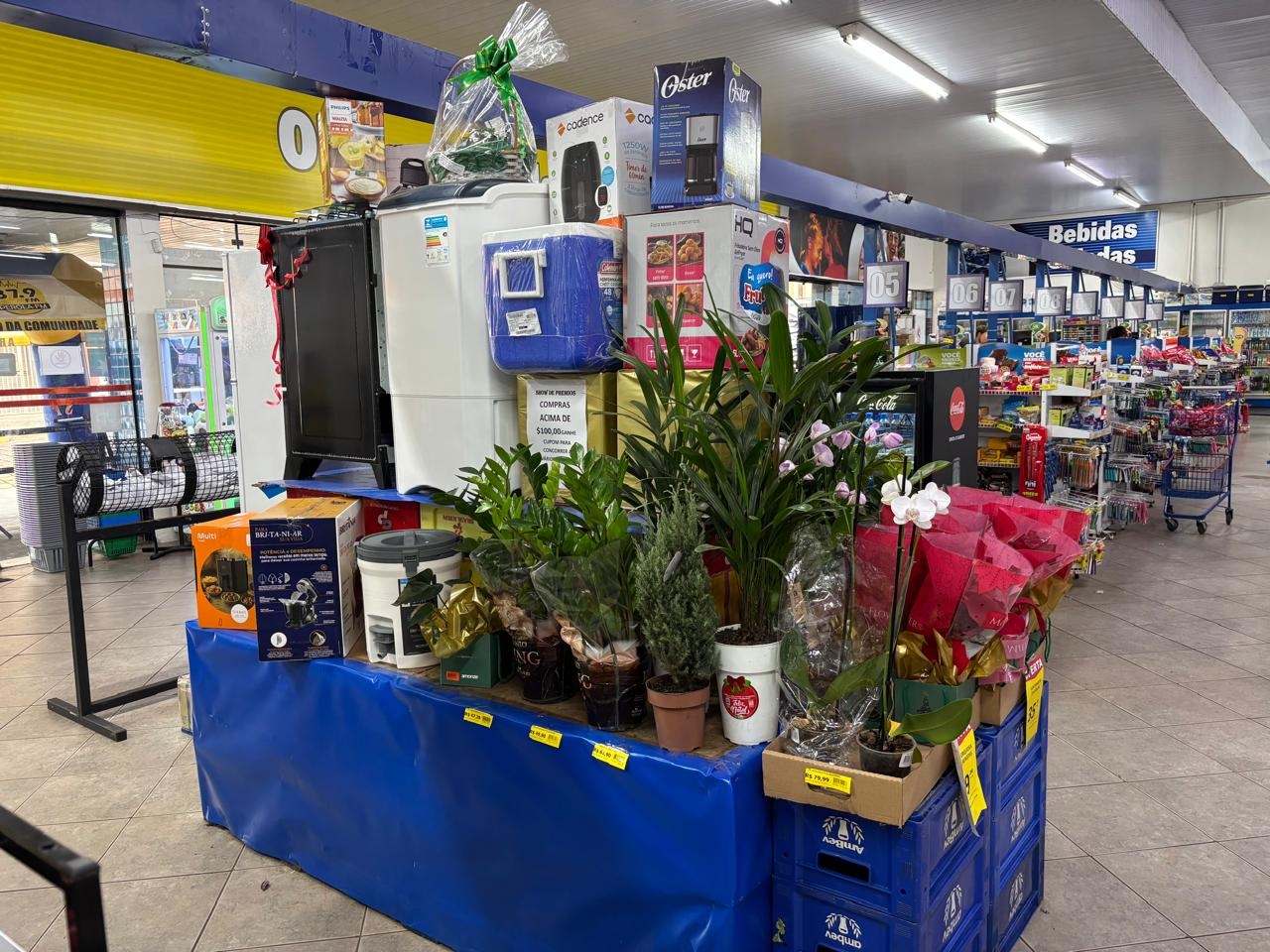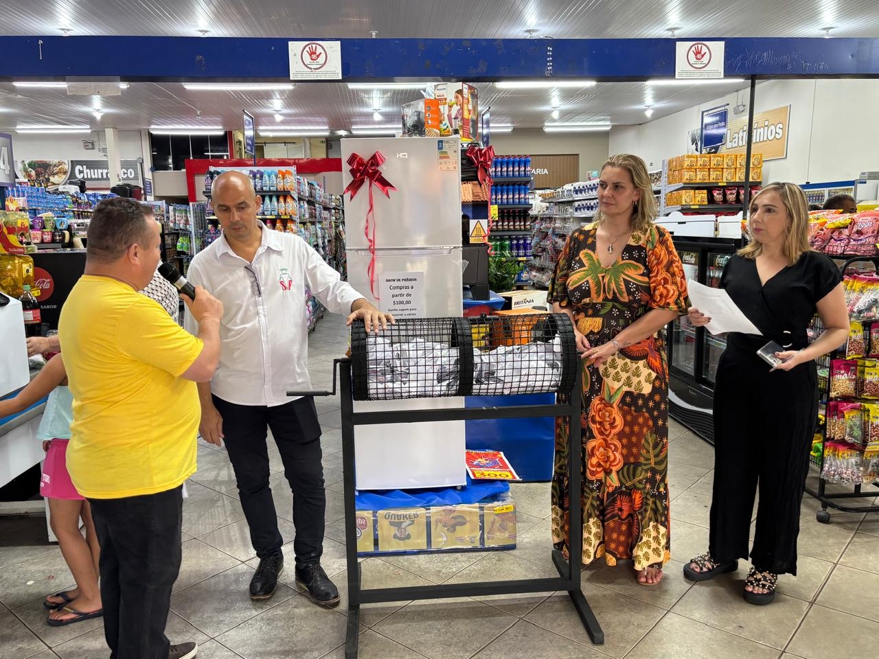Durante o sorteio, diversos prêmios foram distribuídos, contemplando clientes com itens que vão desde eletrodomésticos até vale-compras. Foram premiados Neide Aparecida do Prado Amaro, que ganhou uma cesta de produtos Dona Nena; Laudelino Felipe Gomes, com uma caixa térmica de 45 litros; Maria Leonides Matos Camargo, com um cooler Stanley de 7,5 litros; Thais Bueno, que levou uma sanduicheira Multilaser; Eduardo Garcia, ganhador de uma cafeteira Oster de 1,2 litros; Ronaldo Lucarelli Oliveira, contemplado com um liquidificador Philips Walita; Marcio Rosa de Lima, com uma batedeira planetária Britânia; Thielle de Lima Damásio, ganhadora de uma fritadeira Air Fryer Multhome de 3 litros; Rosana Meneguel, com uma fritadeira Air Fryer Cadence de 3 litros; Alexandra Maria, que ganhou uma fritadeira HQ de 5 litros; Rosinei dos Santos Souza, contemplado com um fogão Atlas de quatro bocas; Josimara C. P. Almeida, que recebeu um tanquinho Britânia; Vera Lucia Pontes, ganhadora de uma geladeira HQ de 213 litros; Tatiana Paiva Duarte, com uma televisão de 43 polegadas com sistema Roku; Darcy Soares Junior, que levou uma bicicleta; e Janete C. Martins Cunha, contemplada com um vale-compras no valor de 300 reais.