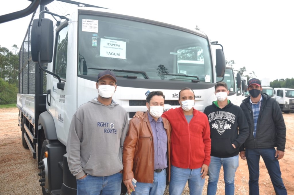 Governo em Ação na cidade de Itapeva O prefeito de Taguaí, Edinho Fundão esteve na cidade de Itapeva nesta semana, onde participou do evento “Governo na Área”. O município foi contemplado, durante o encontro, com uma Van com15 lugares, uma ambulância, um caminhão para coleta seletiva e um kit de implementos agrícolas.