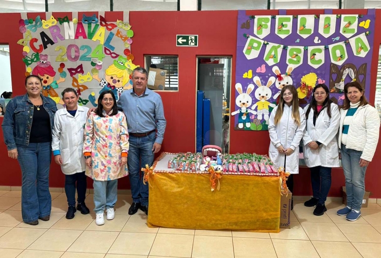 O prefeito Silvio Polo esteve nessa terça feira (28) entregando kits de higiene bucal para alunos da escola municipal Gilda Zanforlin dos Reis Thosi e da Creche Escola Profª Silvana Naldo Cunha de Lima.
