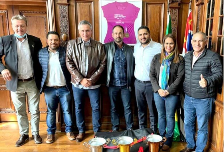 O secretário de esportes Gustavo Rocha e os vereadores Luciano Giamarco, Beto Giamarco e Rosângela (Preta) estiveram participando na terça-feira (28) de uma reunião na Secretaria Estadual de Esportes em São Paulo. Na ocasião, Gustavo e os vereadores solicitaram kits esportivos e a revitalização do piso do Ginásio Municipal de Esportes. Em Timburi, a Prefeitura tem dado todo apoio as modalidades esportivas, principalmente para a infância e juventude, com projetos e aulas nas escolinhas da Secretaria Municipal.