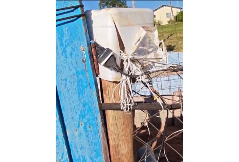 Ao chegar, a profissional constatou uma situação crítica: animais sem acesso à água e alimento, em condições precárias de higiene e mantidos em área delimitada por cerca eletrificada. Ao todo, oito cães foram encontrados na propriedade. Entre eles, uma fêmea apresentava um ferimento grave na região do pescoço, com necessidade urgente de atendimento.